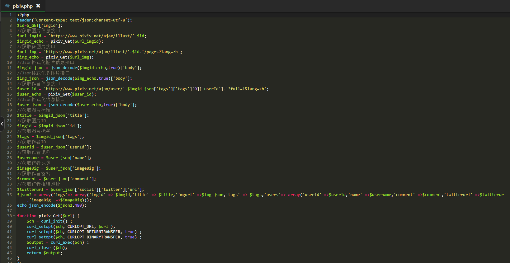 Pixiv图片和用户获取信息接口源码