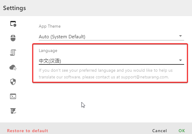 PortX在Windows平台安装完毕后默认是英文界面,可以点右上方的“三个点” - 打开Settings - Language - 将语言修改为中文。(设置实时生效,不需要重启客户端)