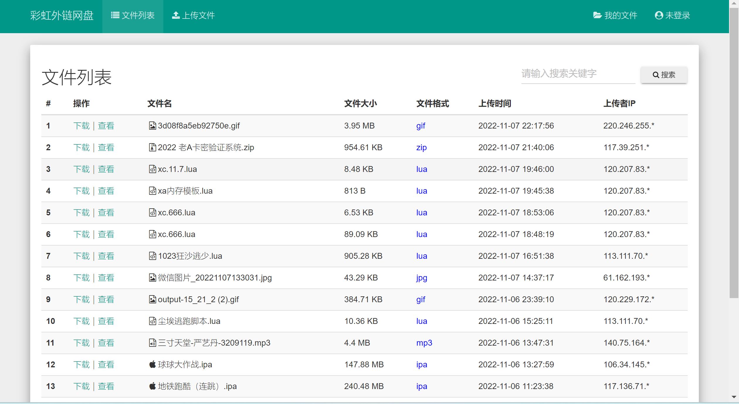 彩虹外链网盘,是一款PHP网盘与外链分享程序,支持所有格式文件的上传,可以生成文件外链、图片外链、音乐视频外链,生成外链同时自动生成相应的UBB代码和HTM……