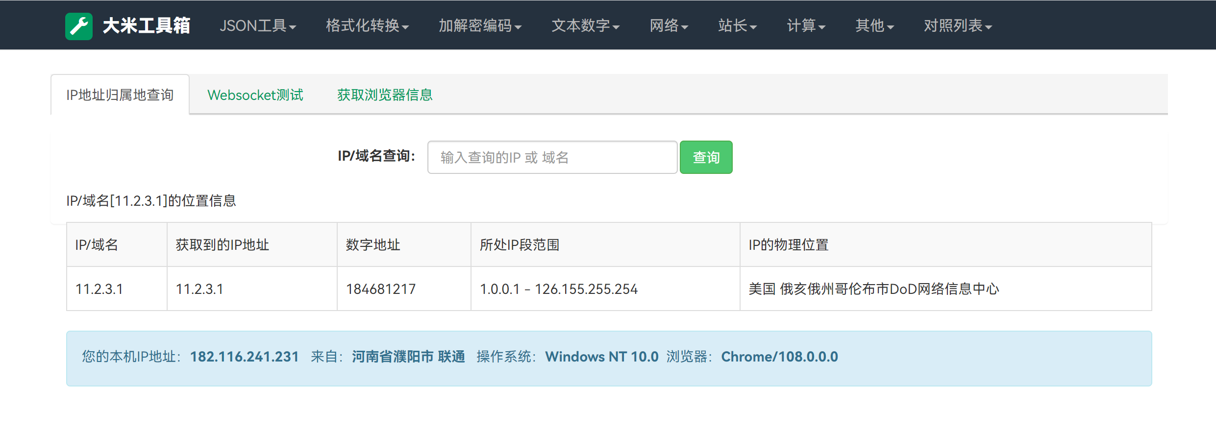 更新IP离线数据库 访问地址:打开 下载得到qqwrt.dat文件,上传工具箱程序根目录覆盖即可。(IP来源于纯真离线数据库) 已失效! 每天 06:00更新离线IP数据库……