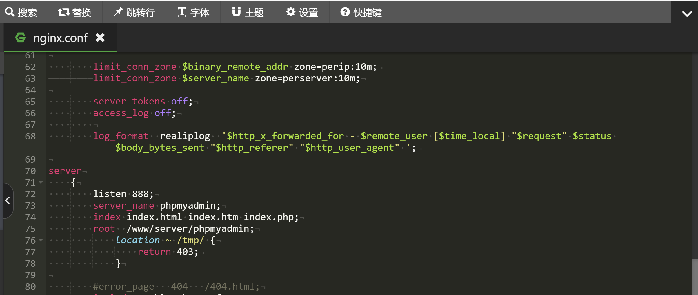 1、修改nginx.conf配置文件,所在路径是 /www/server/nginx/conf