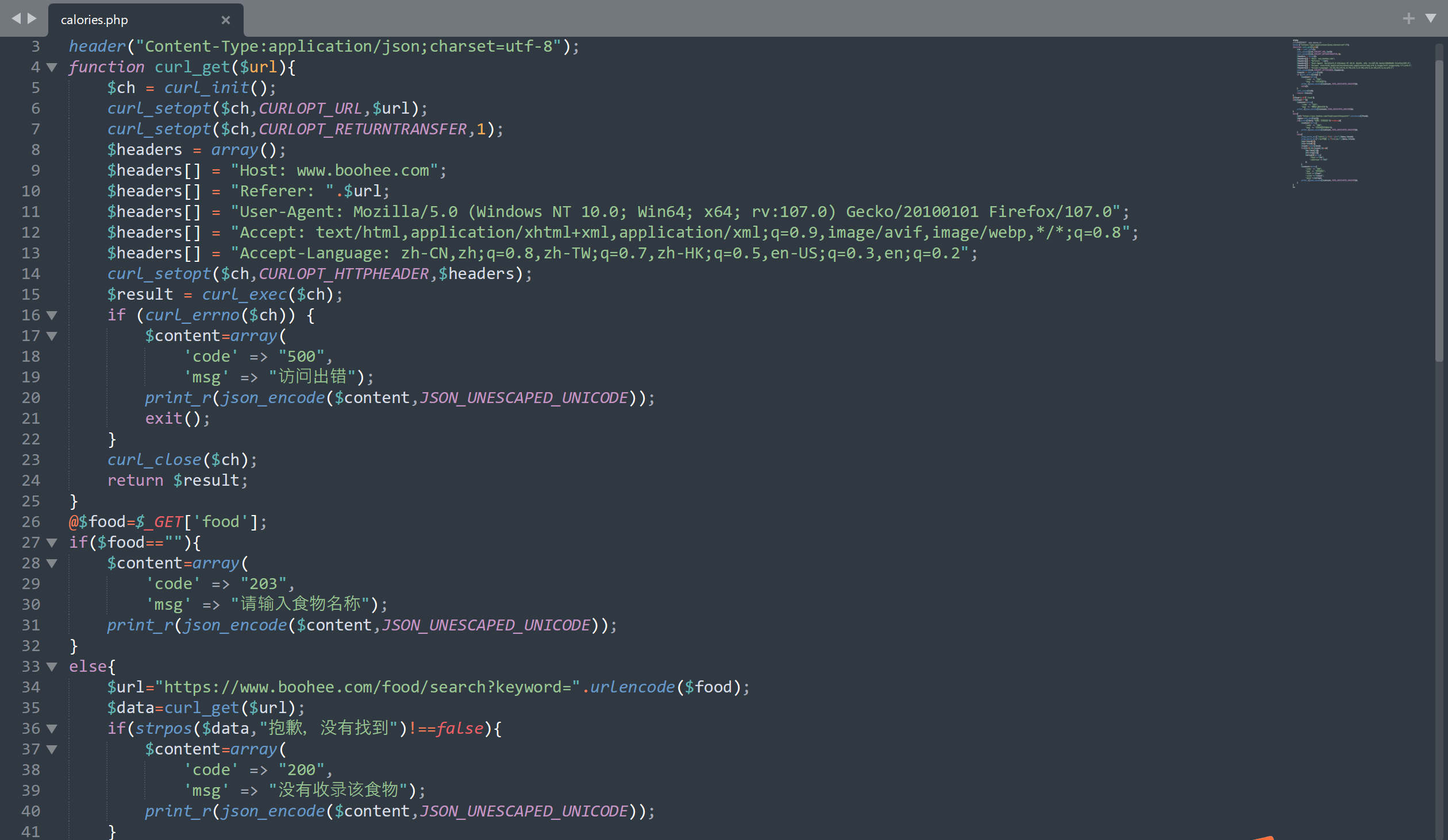 PHP食物卡路里查询API接口源码,接口是薄荷健康,可能在不久的将来会失效,教程:直接将压缩包内php文件上传至服务器目录即可。
