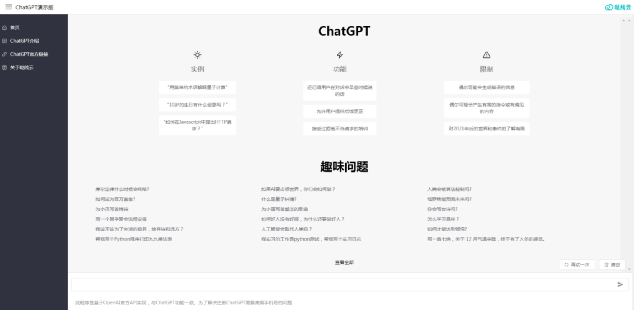 这个网站和官网的界面设计是一样的。免费使用、无需登录账号、无需科学上网,网站无广告,非常方便。打开网页后,直接输入问题提问即可。