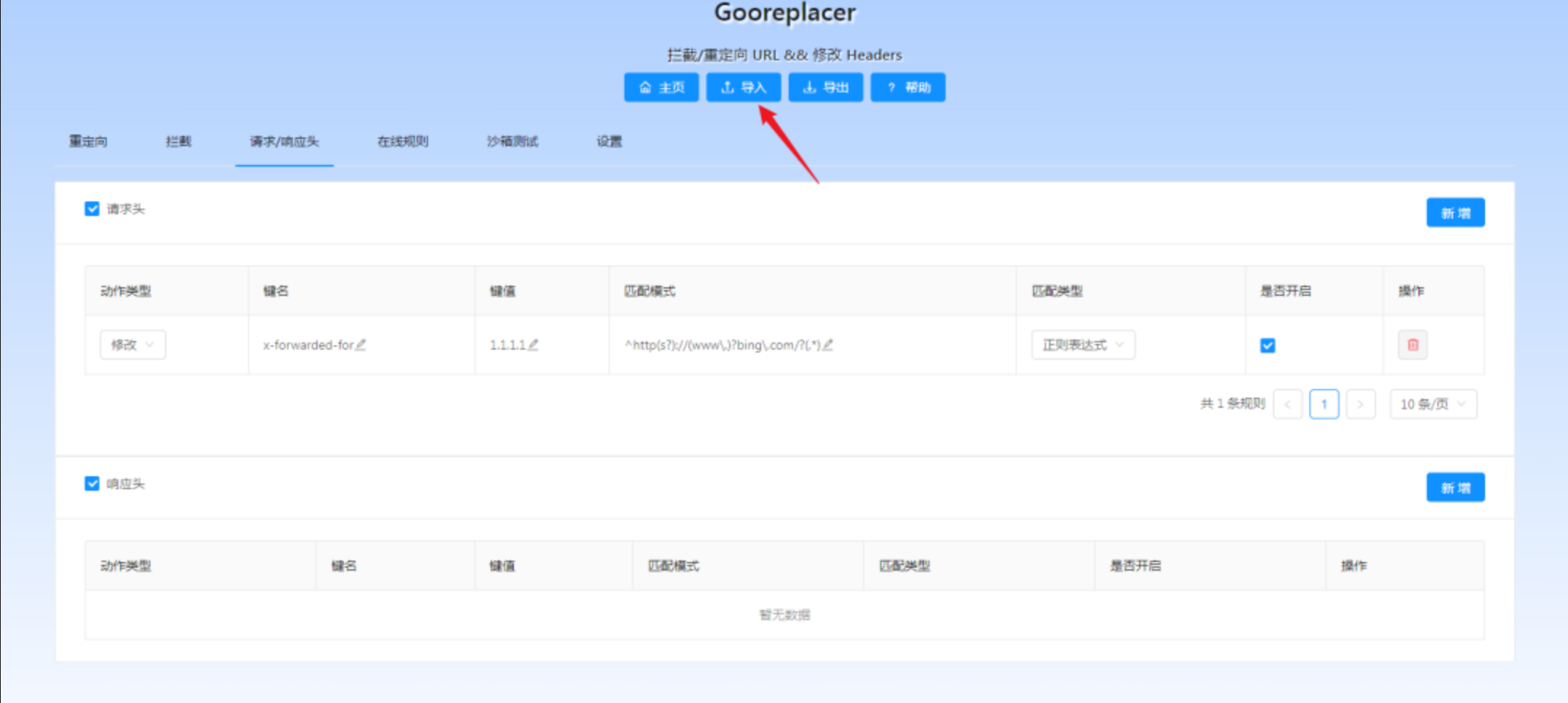 2、点击浏览器中该扩展的图标,点击导入下面的规则。如下图所示。