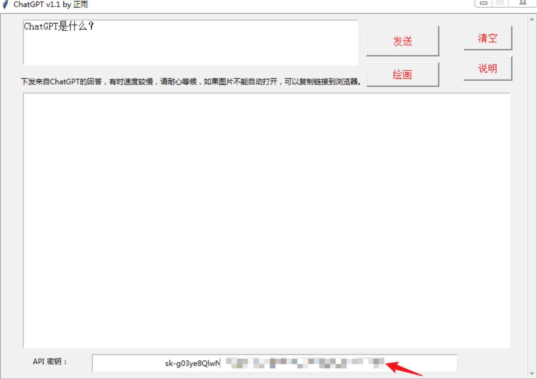 2、下载一个第三方的客户端(来自吾爱破解论坛),将申请到的API密钥输入到下图中。然后就也可以和ChatGPT对话了,平时对话的时候,不需要科学上网,正常联网即可。