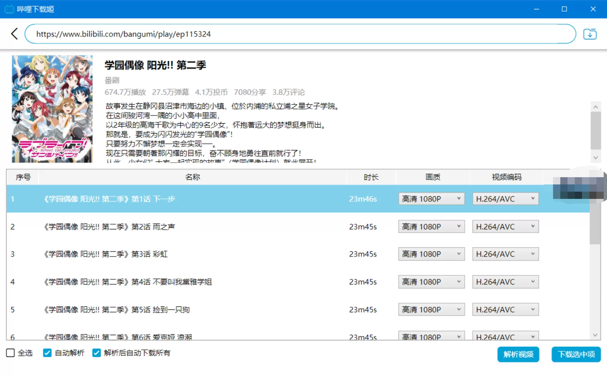 • 支持视频、音频、番剧、剧集、电影、课程下载