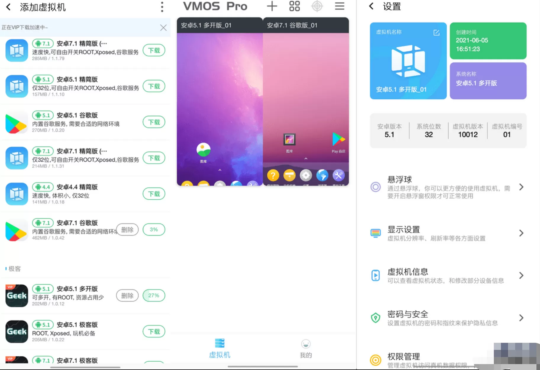VMOS安卓模拟器(原虚拟大师)是一款安卓虚拟机,VMOS安卓最新版的ROM平台提供各种安卓精简版和谷歌版或极客版的ROM版本,鼓励用户更改ROM,自定义ROM权限,可以自带root环境,可免root运行Xposed等模块,预装谷歌移动服务,支持所有应用悬浮窗,可同屏操作应用双开,支持自定义修改分辨率,管理权限等.