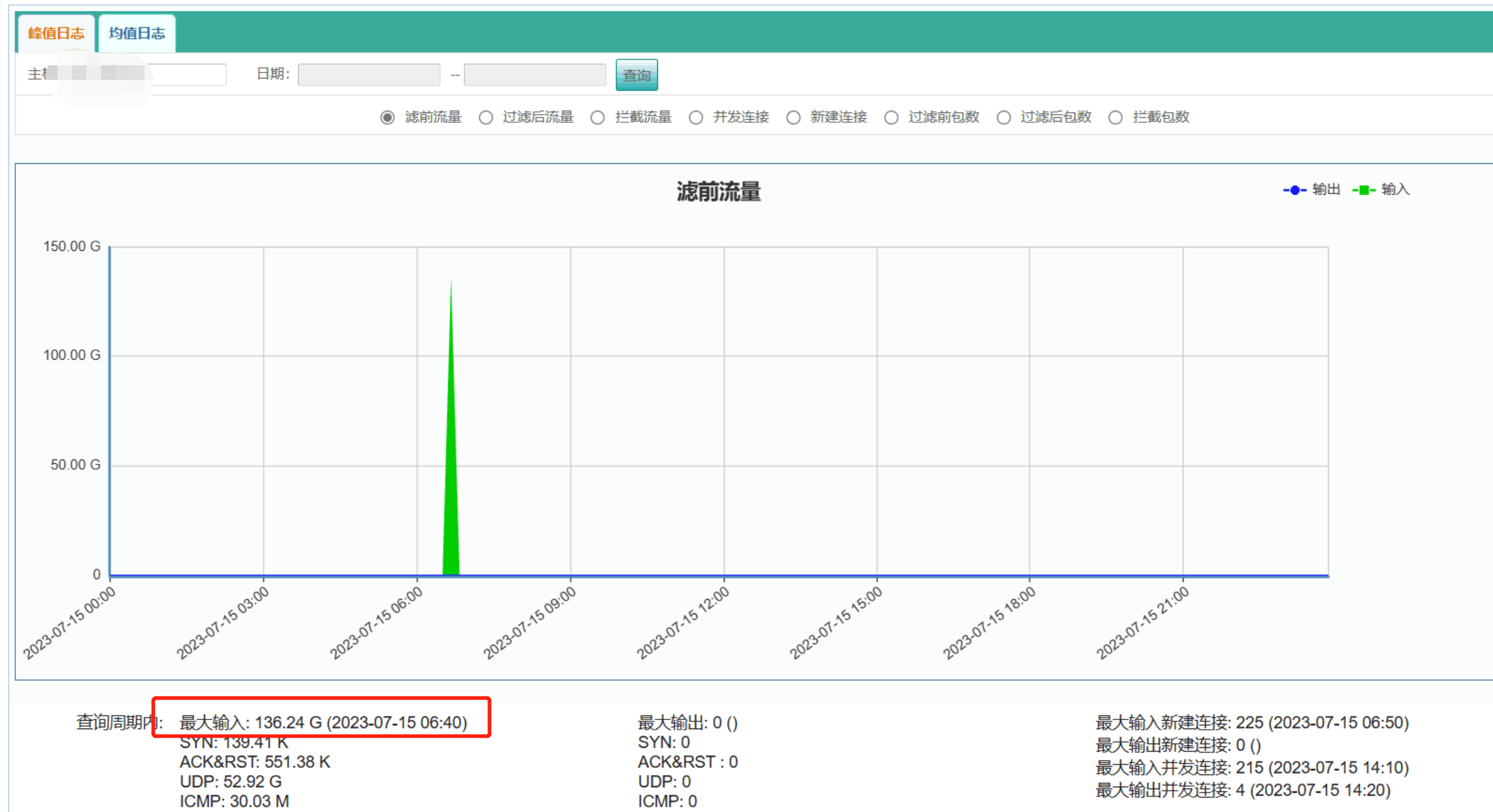 2023年7月15日06:40 Ddos峰值:136.24G;创下迄今为止最大规模DDoS攻击记录。