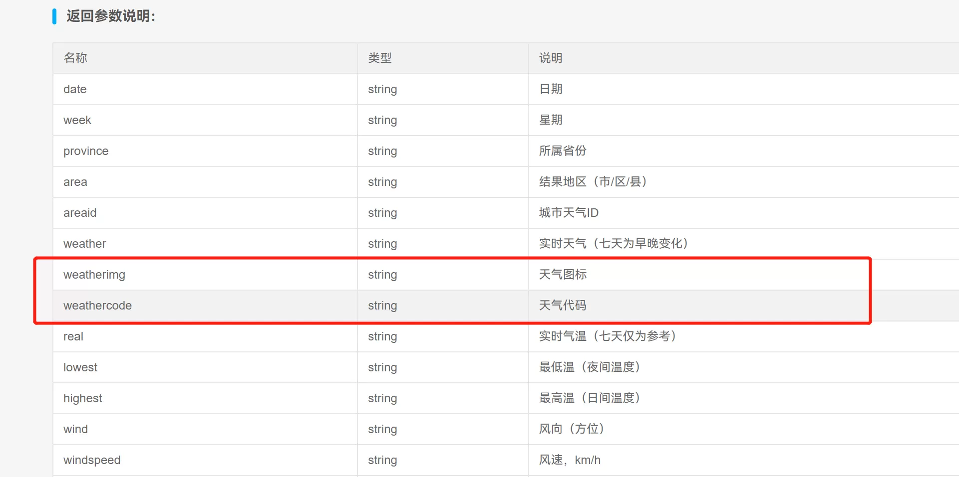 其中返回参数weatherimg默认兼容为天气后过程的图片文件,文件名相互对应,下载文件后可上传到cdn等静态文件服务器中直接使用。weatherimg是天气过程代码,以下划线分割,可以两边分别对应图标文件或将图标文件拼接重新命名使用。