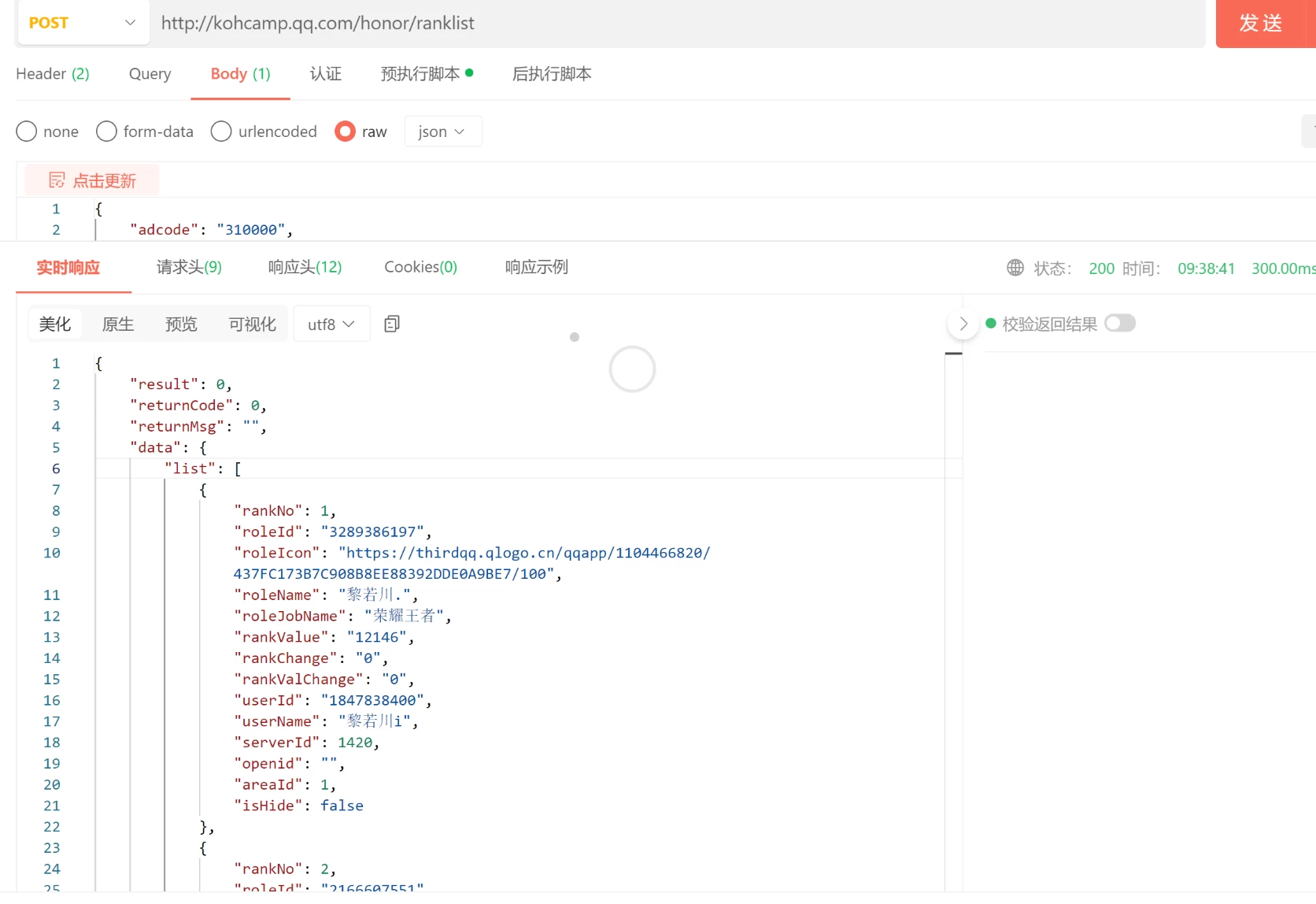 接口URL:POST http://kohcamp.qq.com/honor/ranklist