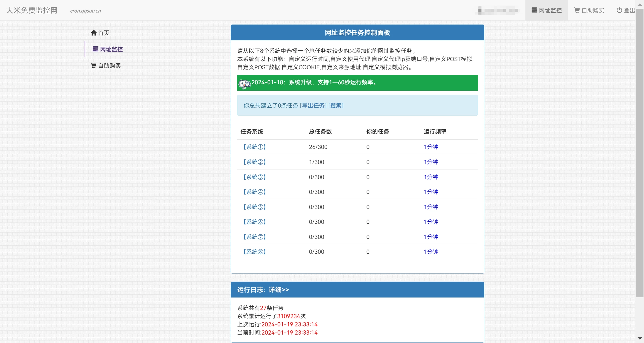 支持1-60秒运行频率。本系统有以下功能:自定义运行时间,自定义使用代理,自定义代理ip及端口号,自定义POST模拟,自定义POST数据,自定义COOKIE,自定义来源地址,自定义模拟浏览器。